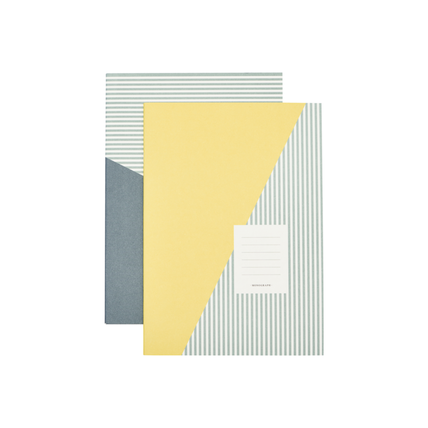 Oben: Sehen aus wie Schulhefte – nur in schön! Notizbücher von Monograph