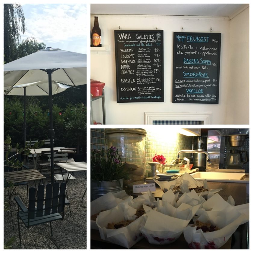Drinnen gibt es ein Kuchenangebot, dass die Entscheidung wirklich schwer werden lässt: Apfelkuchen, kleine Tartes, Kladdkaka, den matschigen schwedischen Schokokuchen, reihen sich neben Möhrenkuchen und Zimtschnecken auf der Kuchentheke. Dazu gibt es, Achtung: französische Crêpes und Galettes! Man sitzt in alten, gemütlichen Sofas und Sesseln, trinkt aus kleinen Porzellantässchen seinen Kaffee und fühlt sich dabei ein wenig, wie bei Oma zuhause oder in alten Zeiten.