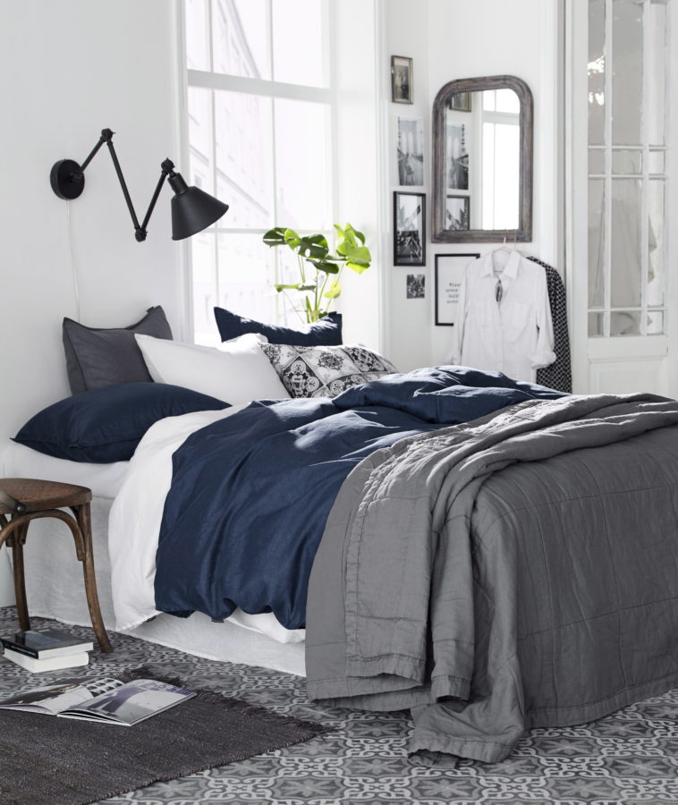 Leinenbettwäsche ist perfekt für wärmere Sommermonate, weil sie angenehm kühlt. Hier in Hell- und Dunkelgrau von Himla.