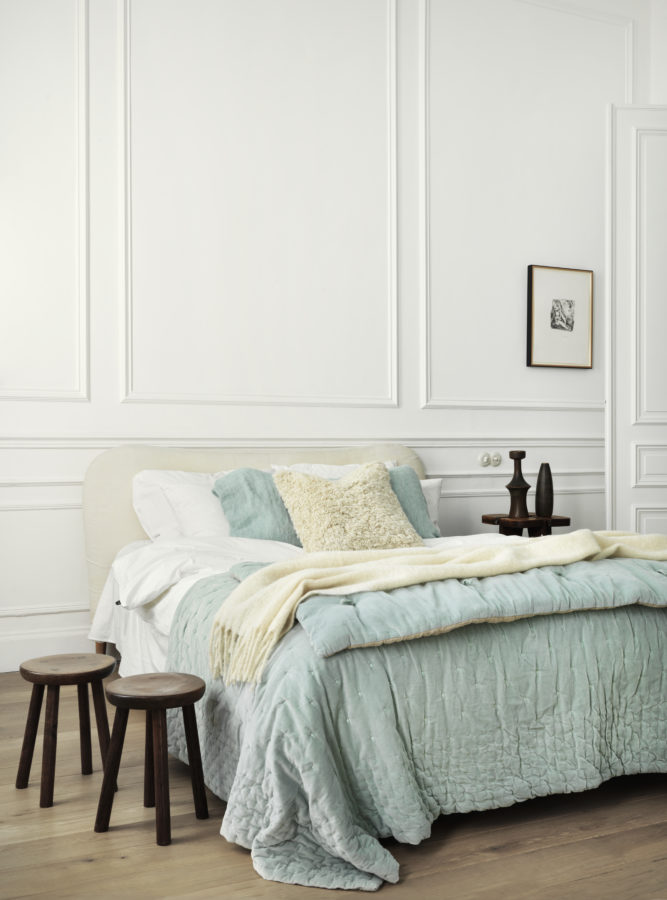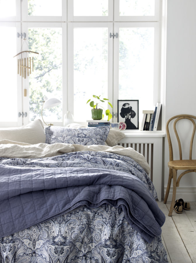 Bett mit Aussicht – und Leinenbettwäsche mit Steppüberwurf (Ellos)